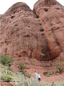 One cannot help but be struck by the physical similarities of these two places – red rock meets red rock, raw expansive desert environment with big blue skies above, plus the vortexes here are so close together, just like Uluru and Katajuta. Uluru also has these holes down the sides.