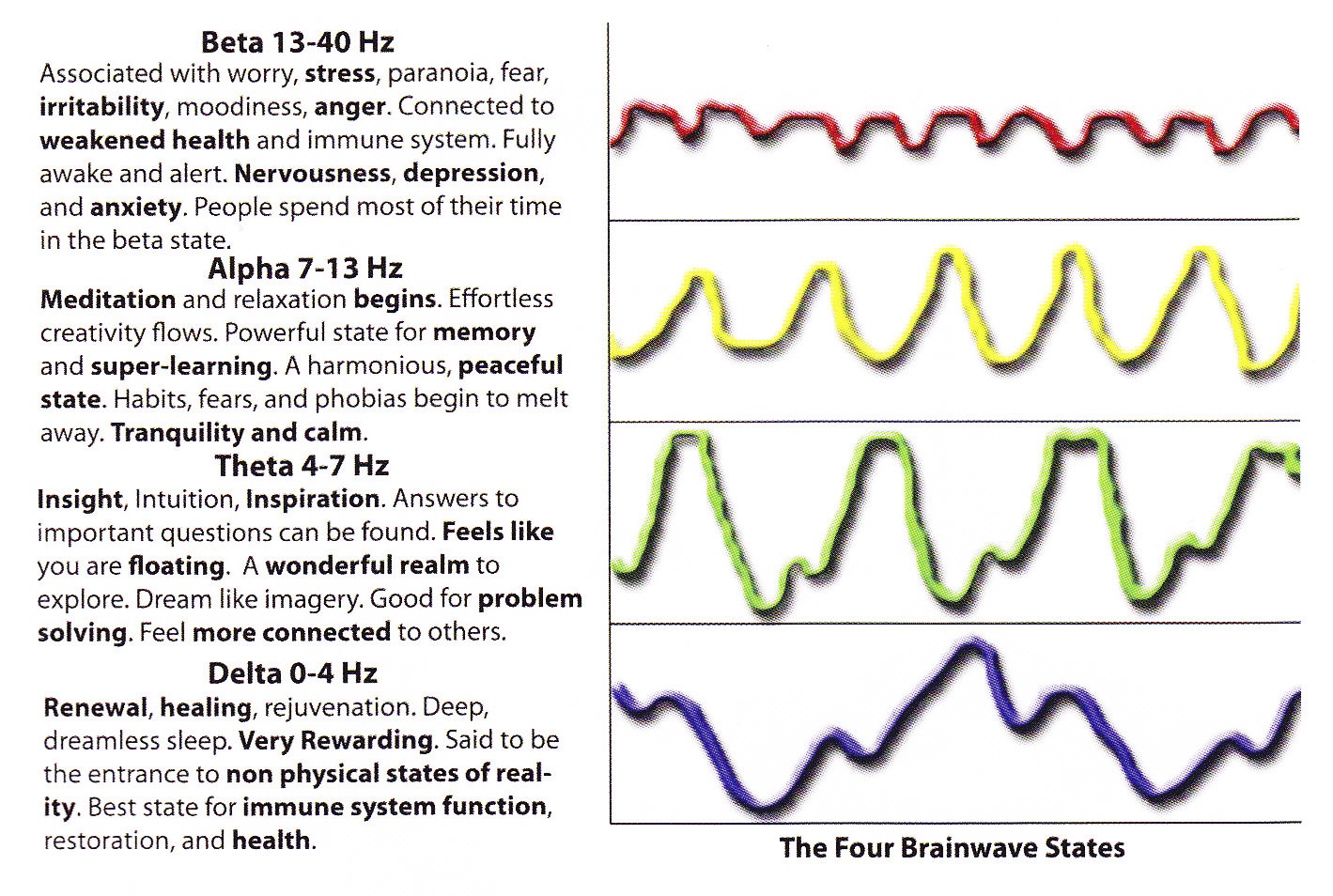 When both sides of the brain are used at equal brainwave frequency rates, this then allows our brain to be used to its optimum.